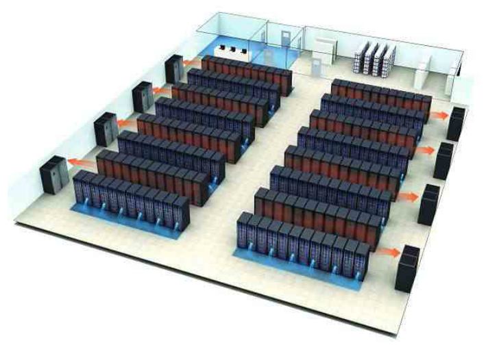 ? ?2、環(huán)境控制系統(tǒng),通常選用機(jī)房精密空調(diào)對數(shù)據(jù)中心的環(huán)境調(diào)節(jié),確保服務(wù)器等IT設(shè)備的運(yùn)行環(huán)境。對于發(fā)熱量大的服務(wù)器等IT設(shè)備,通常選用高通孔率(一般大于70%)網(wǎng)孔門的機(jī)柜,提高機(jī)柜進(jìn)出風(fēng)量;將機(jī)柜面對面、背對背布置,在機(jī)房內(nèi)形成冷熱隔離的風(fēng)道,提高制冷效率:空調(diào)采用下送風(fēng)方式,確保機(jī)房送風(fēng)均勻,提高制冷效率。